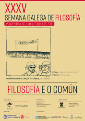 A XXXV Semana Galega de Filosofía terá lugar na cidade de Pontevedra do 2 ao 6 de abril de 2018, baixo a epígrafe de “Filosofía e o Común”.